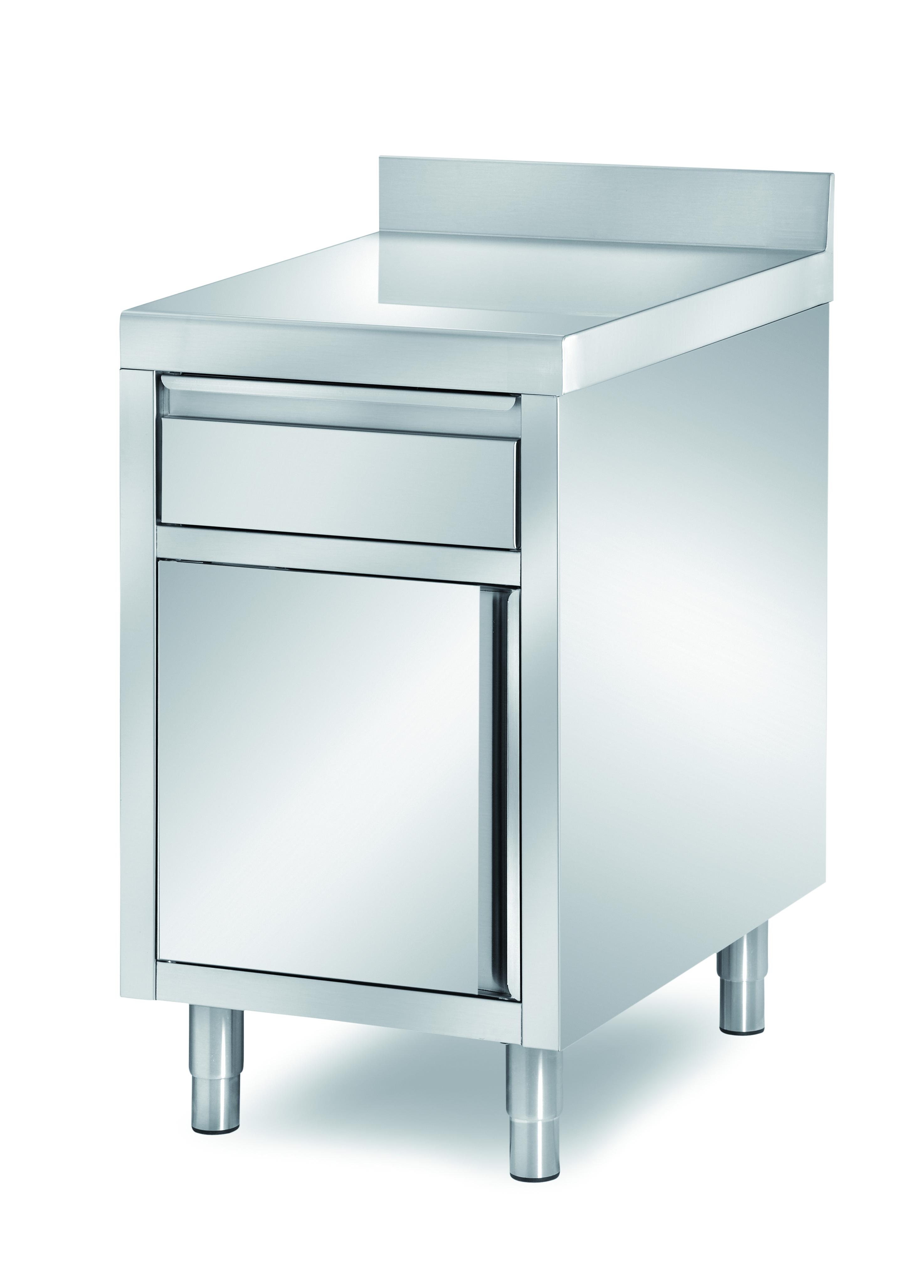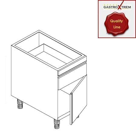 Schrankkombination mit 1 Schublade und separatem Schrankfach mit Flügeltür (en). Der Edelstahl-UnterSchrank hat ein höhenverstellbares Zwischenbord. Die Ausführung ist als Unterbauelement ohne Arbeitsplatte. Der Edestahlschrank gehört zur Rubrik der individuellen Edelstahlmöbel für den Sonderbau. Die Unterbauelemente sind robust und hochwertig in der Ausführung. Hier in verschiedenen Breiten und Bautiefen lieferbar. Natürlich erhalten Sie auch die hierfür passende individuelle Edelstahl-Arbeitsplatte nach Maß. Am besten gleich mitbestellen. Hersteller ist GastroXtrem der Edelstahlspezialist aus Raubling in Oberbayern. Eine anderer Bezeichnung für Auszüge wäre auch Schubläden oder Schubkästen. Je nach Bautiefe oder Baubreite sind die Schubläden in der Gastronorm-Größen GN 1/1 und GN 2/1 im Standardbereich kompatibel. Bei allen Edelstahlartikel ist grundsätzlich ein Sonderbau mit Ihren Wunschmaßen nach separater Anfrage möglich. Geben Sie hierfür einfach Ihre Sonderbau-Maße bezüglich der gewünschten Breite, Tiefe und Höhe bekannt. Wir erstellen Ihnen jederzeit gerne ein Angebot. Wie Sie aufgrund unserer Bilder in diesem Unterbauelement entnehmen können, sind alle Unterbauelemente individuell miteinander kombinierbar. Kombinieren Sie hier einen eigenes Arbeitsschrank in den unterschiedlichsten Ausführungsvarianten.