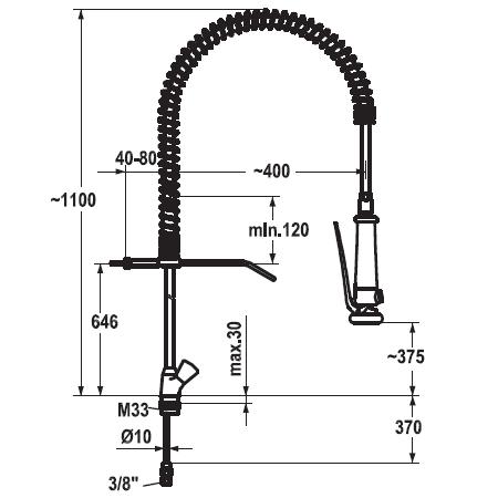 Sie kaufen hier bei uns im Online Shop diese Spültischarmatur mit Geschirrwaschbrause als hochwertige und zuverlässige Spültischarmatur für reine Durchschubspülerzeilen mit Vorspülbecken.