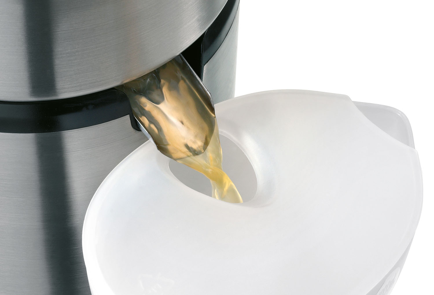 Der leistungsstarke Entsafter verarbeitet effizient mit 20.000 Umdrehungen pro Minute Gemüse oder Obst zu einem leckeren sowie mineral- und vitaminreichen Saft. Dank der spülmaschinengeeigneten Anbauteile erledigt sich die Reinigung im Handumdrehen.