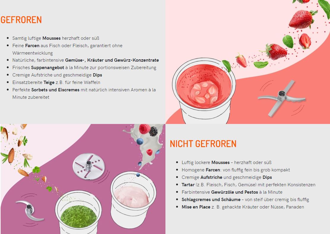 - Cuttern oder Aufschlagen von ungefrorenen Lebensmitteln.