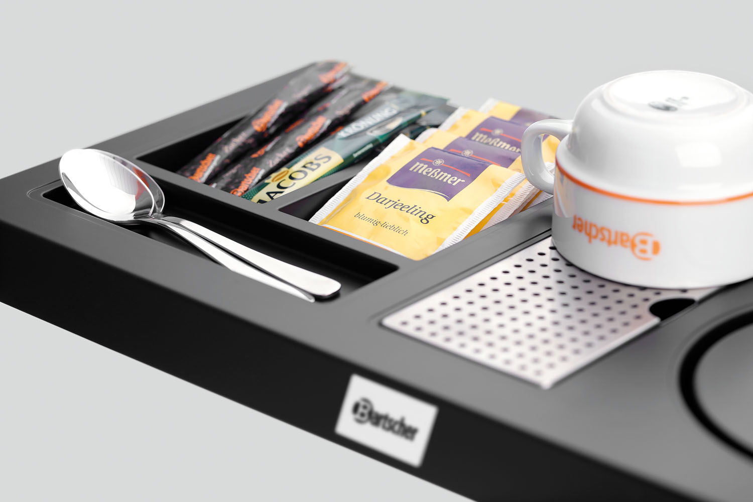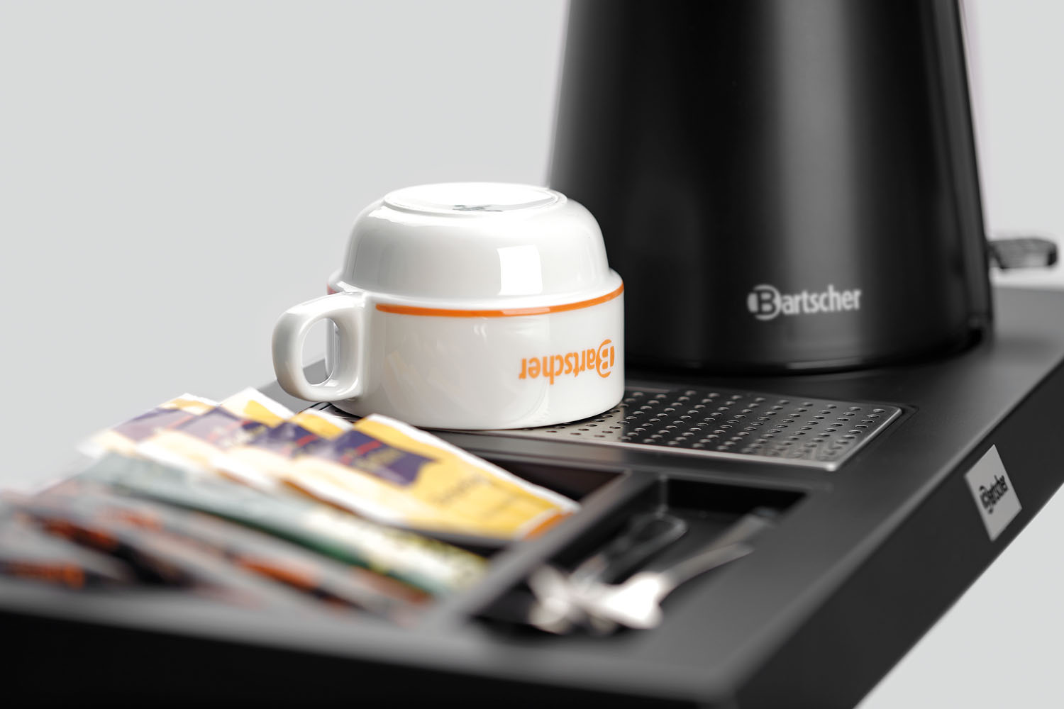 Heißwasser für Tee, Instantkaffee oder andere Aufgussgetränke: Ob auf dem Hotelzimmer, in Wartebereichen oder bei der Kundenberatung. Mit der Teestation ist alles ordentlich und sofort griffbereit – Vom Teebeutel bis hin zum Löffel.