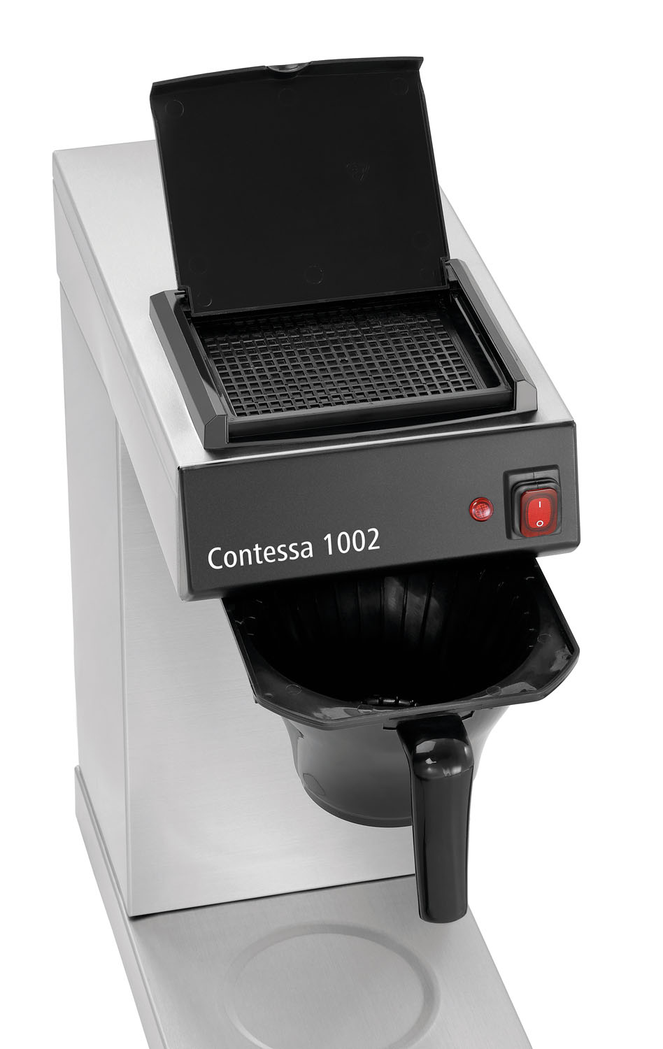 Ideal für Buffets, Caterings oder Veranstaltungen – 2 Liter frisch gebrühter Filterkaffee können ohne lästiges Umschütten direkt in der Isolierkanne aus Edelstahl serviert werden. Das Edelstahlheizelement der Contessa 1002 sorgt für eine perfekte Wärmeübertragung.
