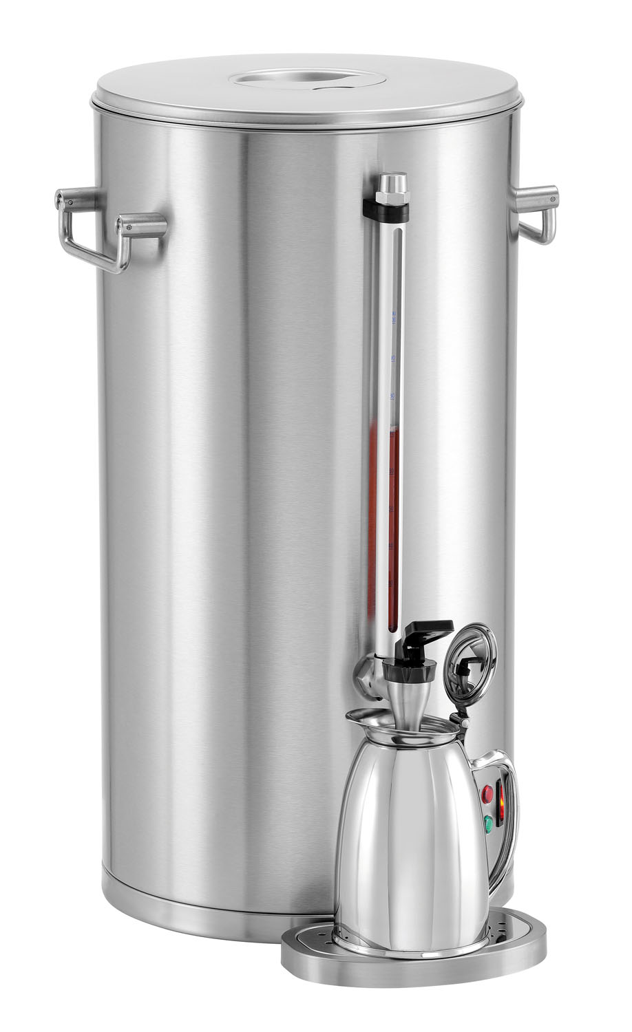 Tasse oder Kännchen: Die Rundfilterkaffeemaschine besticht durch viele verschiedene Features: Großes Fassungsvermögen von über 13 Litern, Entkalkungssignal, abnehmbare Abtropfschale und eine lichte Höhe unterhalb des Ablasshahns, die auch für Kännchen ausgelegt ist. Das elegante Design wertet jeglichen Bereich der Kaffeeausgabe auf.