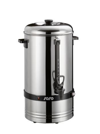 - Material: (Gehäuse, Deckel und Filterkorb) Edelstahl, - Feinmaschiger Filterkorb für grobgemahlenen Kaffee, (kein Filterpapier notwendig), - Peilglas, - Brüh- und Warmhaltefunktion durch separate Heizsysteme, - Mit Sicherheitszapfhahn, - Ideal für das Hotel-Frühstücksbuffet, Cafés, Büros, Altenheime usw., - Gewicht: 7 kg, - Maße: B 265 x L 265 x H 540, - Inhalt: 10 Liter, - Anschluss: 230 V - 50 Hz - 1,5 kW