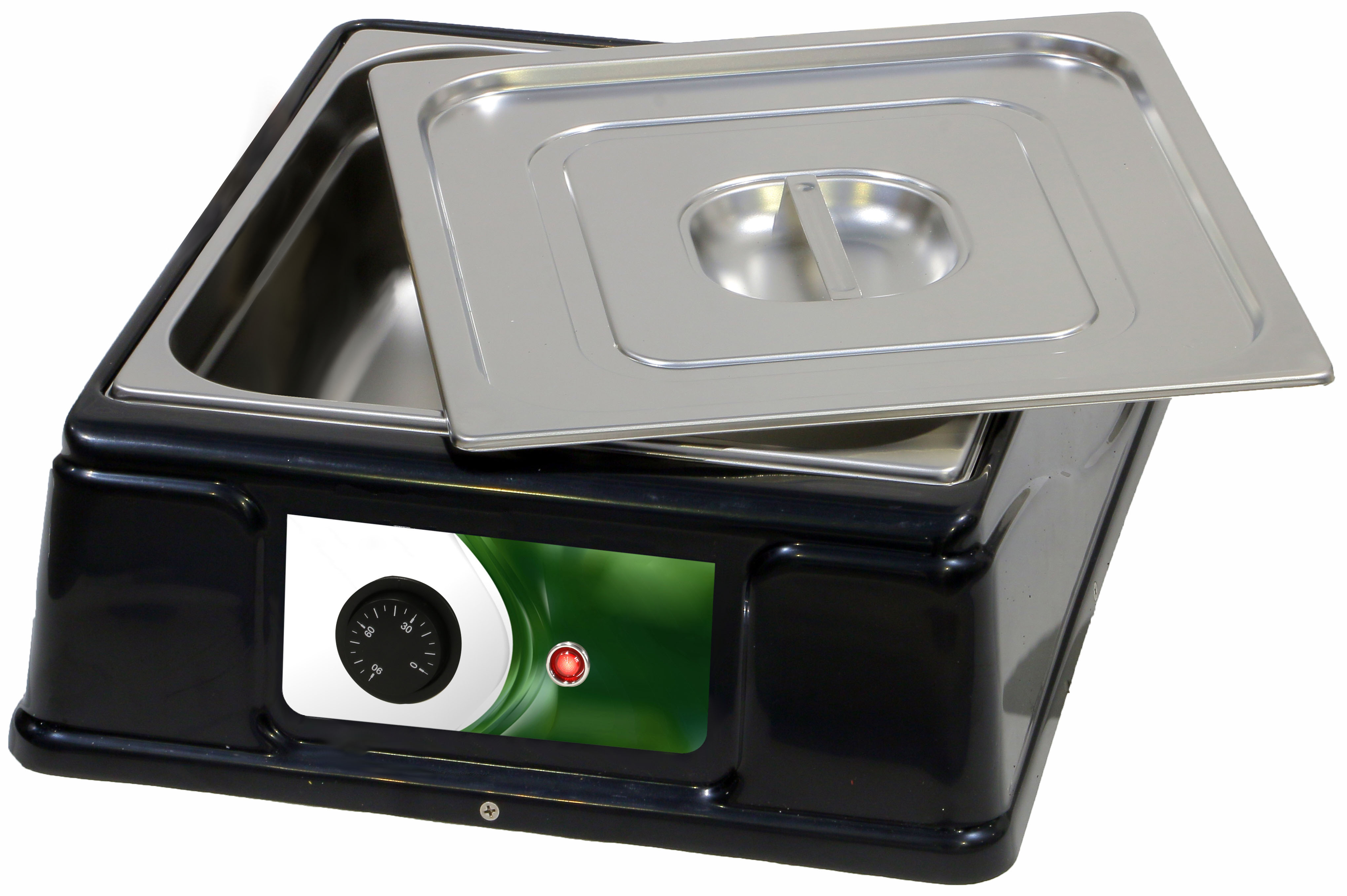Dieser Schokoladenschmelzer von Neumärker schmilzt bis zu 9 Liter Schokolade in einem vorhandenen 2/3-GN-Edelstahlbehälter. Für den Gebrauch in der Gastronomie gebaut ist er optimal z.B. zum Schmelzen von Schoko-Glasur.