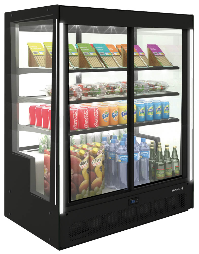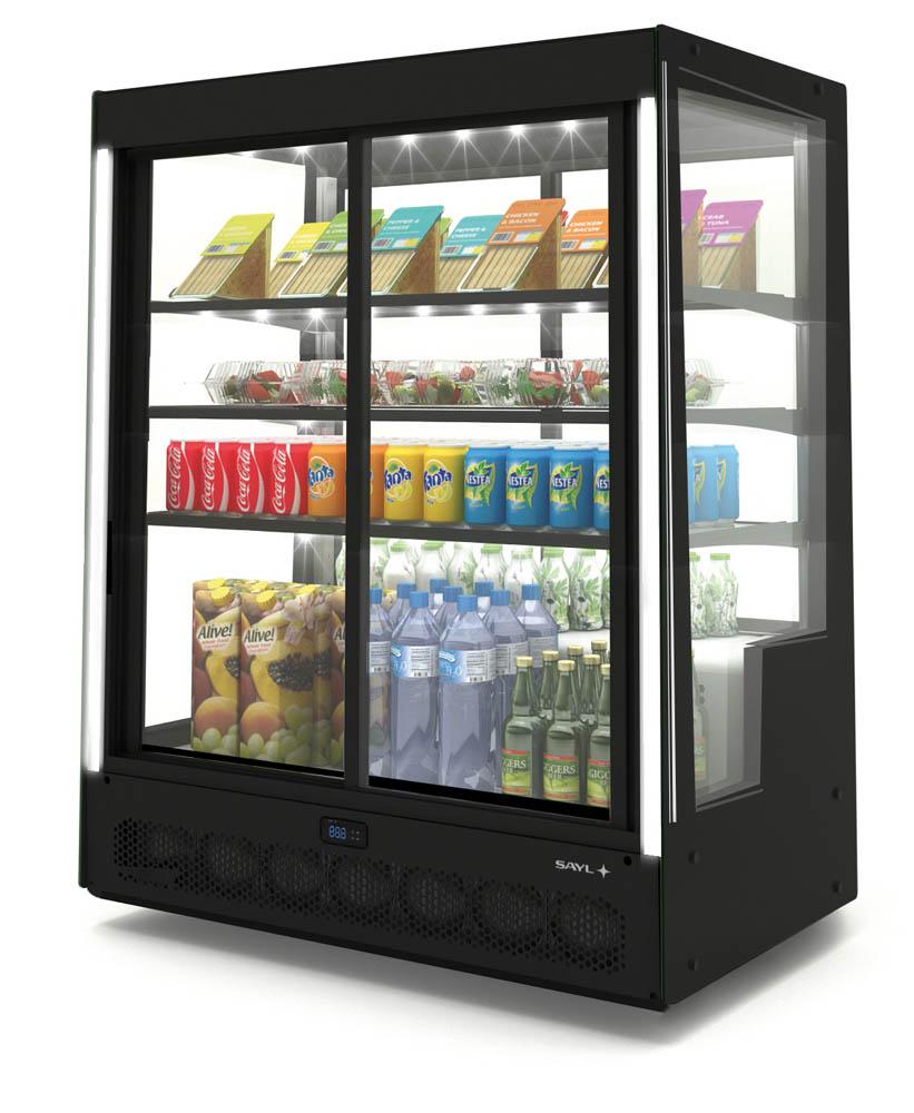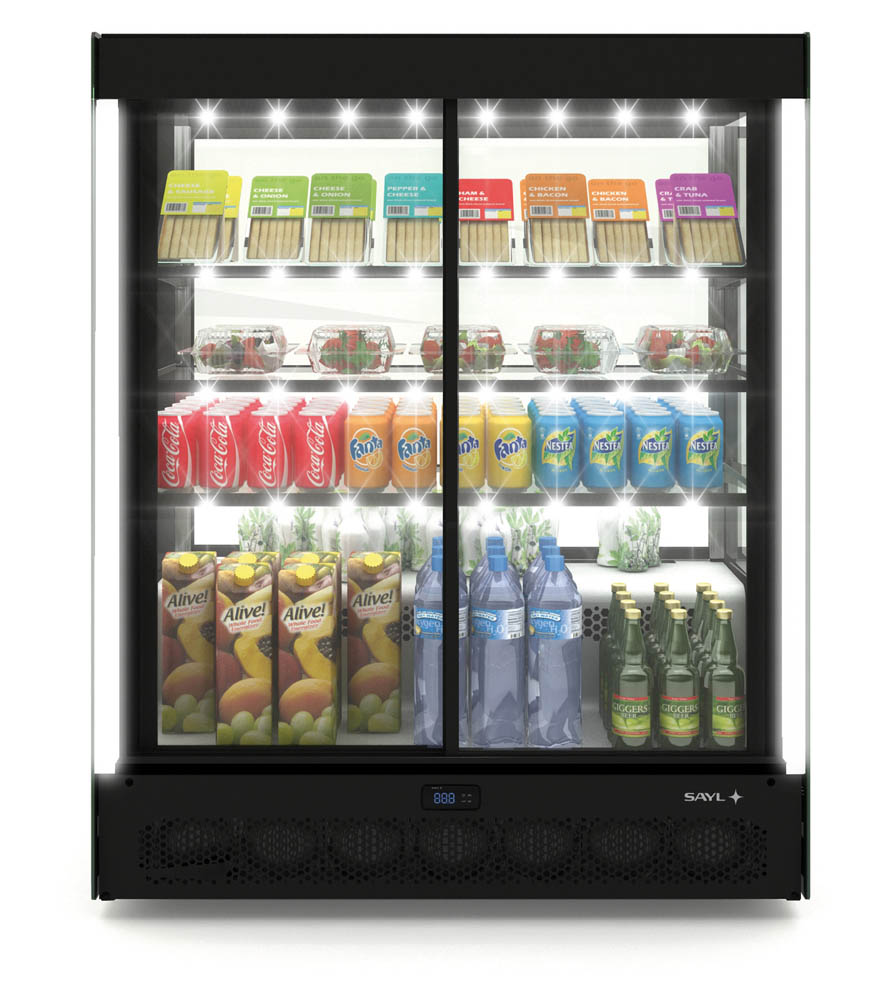 Temperaturbereich +4°C bis +8°C (bei 21°C Raumtemperatur) • digitale Temperaturanzeige • Schiebetüren auf Vorder- und Rückseite • für Selbstbedienung geeignet • langlebige LED-Beleuchtung auf jeder Ebene • seitliche Beleuchtung für mehr Aufmerksamkeit • Absatzsteigerung durch maximale Sichtbarkeit der Produkte • modulares Design ermöglicht die Aufstellung in Reihe • besonders energieeffizient durch doppelte Verglasung • Scheiben aus gehärtetem Glas • Glasablagen höhenverstellbar • flache Oberseite: Ideal für den Einbau in Theken • 3 Glasablagen 900 x 360 mm • Kompressor auf der Rückseite für die ideale Platzausnutzung auf jeder Ebene
