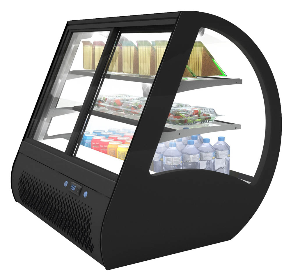 außerordentliche Sichtbarkeit und gute Beleuchtung für Getränke, Snacks, Salate, Torten uvm. • Temperaturbereich +2°C bis +6°C (bei 21°C Raumtemperatur) • digitale Temperaturanzeige • hinten Schiebetüren • langlebige LED-Beleuchtung auf jeder Ebene • Absatzsteigerung durch maximale Sichtbarkeit der Produkte • besonders energieeffizient durch doppelte Verglasung • Scheiben aus gehärtetem Glas • Glasablagen höhenverstellbar • Glasablagen 695 x 250 mm • für den Kunden versteckte Kühleinheit auf der Rückseite • ohne Schrauben von außen