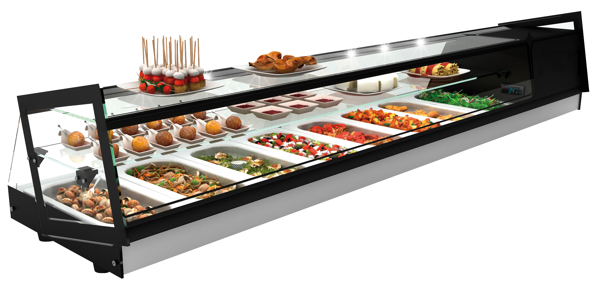 In unserem Online Shop kaufen Sie diese Kühlvitrine von Neumärker passend für 8 x 1/3 GN Schalen. Die Tisch-Aufsatzkühlvitrine ist für jede Art der Gastronomie Garant einer professionelle Waren-Präsentation.