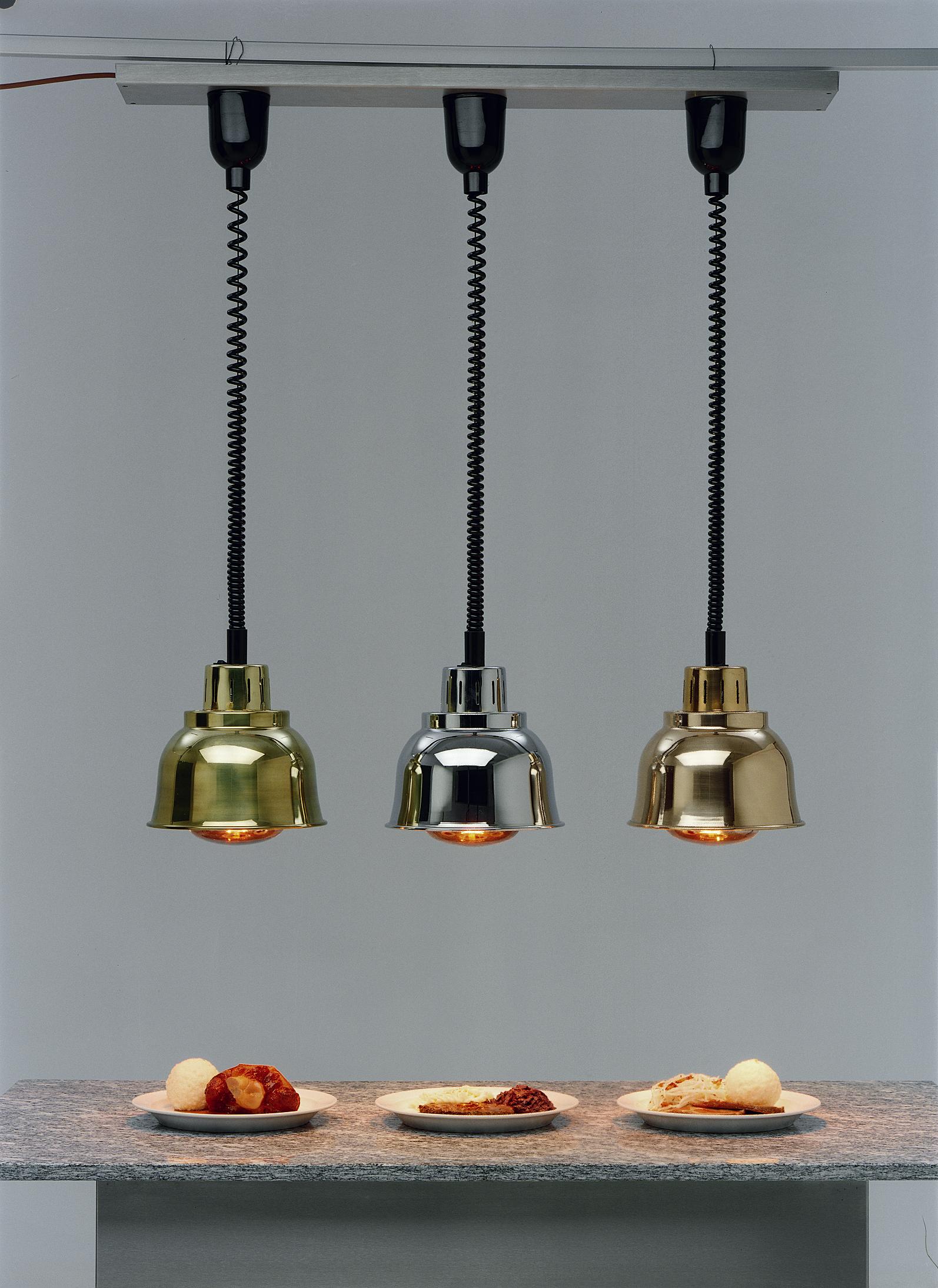 Der hier ausgewählte Wärmestrahler ist sowohl im Design als auch in der Verarbeitung absolut empfehlenswert. Die Ausführung ist sehr hochwertig in Messing masssiv gearbeitet uns somit eine gute Alternative zum einfacheren Wärmestrahler in Aluminium. Der Speisenwärmer garantiert Ihrem Kunden auch bei Wartezeiten am Pass, daß das Essen auf dem Teller warm bleibt. Die Wärmestrahler verfügt über eine flexible Aufhängung mittels Spiralkabel auch die Möglichkeit stufenlos verstellt zu werden. Sie haben hier die Möglichkeit bis zu 6 Strahler neben einander in der Reihe mitttels separater Wärmerstrahler Leiste zu installieren, wählen Sie bitte hierfür die passende Option aus. Gerne beraten wir Sie auch persönlich, wenn Sie Fragen hinsichtlich der Ausgabesituation haben.