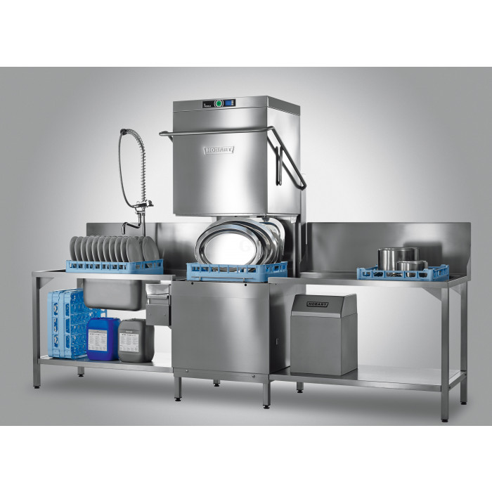 Die Universaler Durchlauf-Haubenspülmaschine von HOBART ist sowohl für die gerade als auch für die Aufstellung über Eck geeignet. Die Erhitzungsleistung ist bei Warmwasseranschluß um 50% reduzierbar. Die Durchschubmaschine ist hier mit eingebauter Enthärtung als Typ PREMAX AUPLS-10 zu kaufen. Der Haubenspüler ist aufgrund seiner großen Innenraumes universell einseztbar. Laut Bezeichnung natürlich als Besteck- und Geschirrspülmaschine. Sie haben aber auch die Möglichkeit gleichzeitig 8 Bäckerei Ladenbläche der Größe 600 x 400 mm oder Bleche der Größe 660 x 500 mm zu spülen. Auch für alle Metzgerein ist diese Gewerbe-Durchlauf-Spülmaschine die richtige Wahl, da hier sogar Euronorm-Kisten, Körbe und Tabletts gespült werden können. Das Einzigste was noch in der Gastronomie gespült werden müssen sind Kleingerätschaften und Gastronom-Behälter bis zur Größe GN 2/1! Und auch das ist mit der Hobart Premax AUPLS-10A möglich!