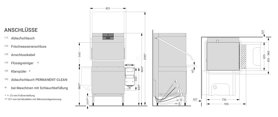 - inklusive Flüssigreiniger-Dosierpumpe & Klarspülmittel-Dosierpumpe