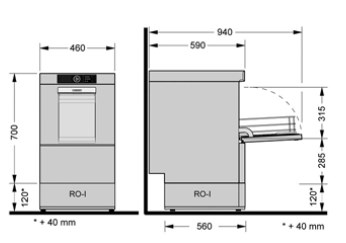 - Gerätemaß B/T/H: 460 x 590 x 820 mm (700 mm + 120 mm Osmoseanlage)
