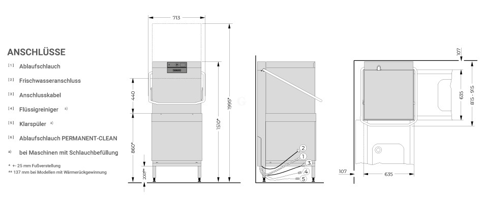 - inklusive Flüssigreiniger-Dosierpumpe & Klarspülmittel-Dosierpumpe