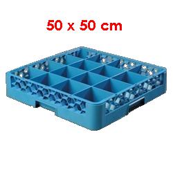 Gläserkorb ( Geschirrspülkorb GLAS ) für die Gläser- und Geschirrspülmaschinen 4x4 für insgesamt 16 Gläser mit einem maximalem Durchmesser von 115 mm - der preisgünstige Gläserkorb im Format 50 x 50 cm für Ihre Geschirrspülmaschine. Verhindert Glasbruch, läßt sich einfach stapeln, lagern und transportieren. Verschiedene Höhen lieferbar. Die Ausführung der Spülkorbes ist mit Facheinteilung aus hellgrauem Polypropylen, DIN 66075-F (50 x 50 cm), stapelbar, hitzeresistent bis +120°C, durch weitere Aufsätze lässt sich die Nutzhöhe um jeweils 4 cm erweitern ( siehe Varianten ).