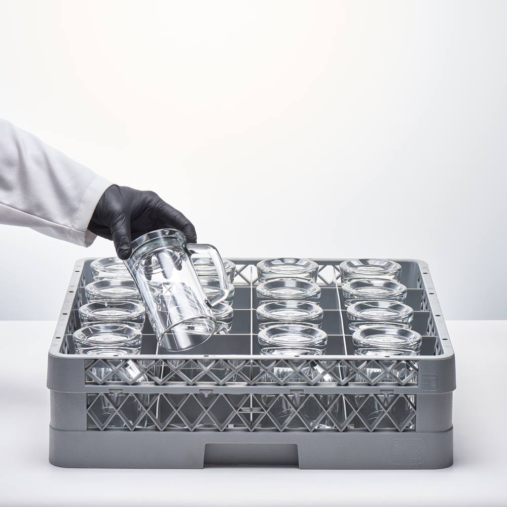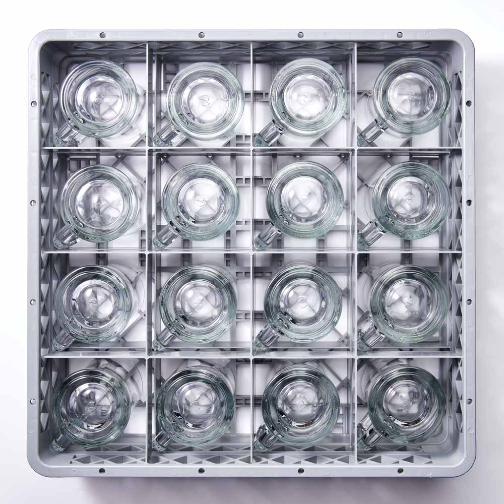 Dieser weitmaschige Spülkorb mit 16 Fächern ist konzipiert für die Reinigung von Gläsern und Tassen mit einem großen Durchmesser. Die durchdachte Bauweise lässt Wasser und Luft optimal zirkulieren für eine sorgfältige Reinigung und die perfekte Trocknung Ihres Spülguts! Griffmulden an jeder Seite unterstützen Sie im Arbeitsalltag. Mit dem käuflich erwerbbaren Aufsatzrand (GTIN 4062125027658) geben Sie höheren Gläsern den nötigen Halt. Der Spülkorb ist robust, langlebig, leicht und ohne scharfe Kanten sauber verarbeitet. Mit 500 x 500 mm ist der Korb passgenau für alle (Hauben-), Transportwagen, Tellerhalter, Besteck- und Besteckkörbe von Stalgast!Polypropylen hohe Wasserdurchlässigkeit und Luftzirkulation 16 Fächer 500 mm x 500 mm zugehöriger Aufsatzrand erhältlich allseitig Griffmulden langlebig, beständig, bruchstabil thermisch belastbar beständig gegen Säuren, Alkalien, Fette und Öl beugt Schäden am Spülgut vor geringes Eigengewicht stapelbar recyclebar abgestimmt auf Spülmaschinen von Stalgast
