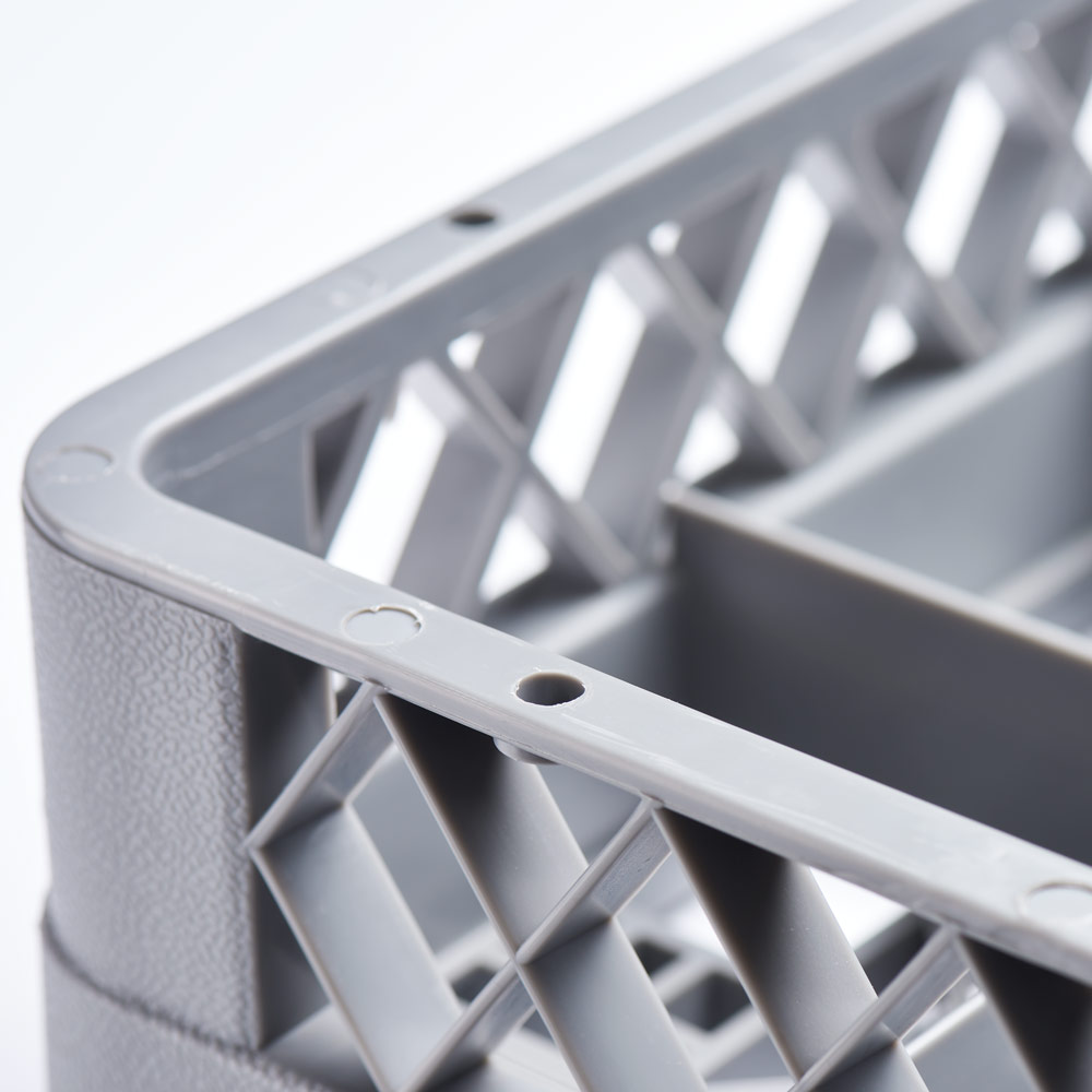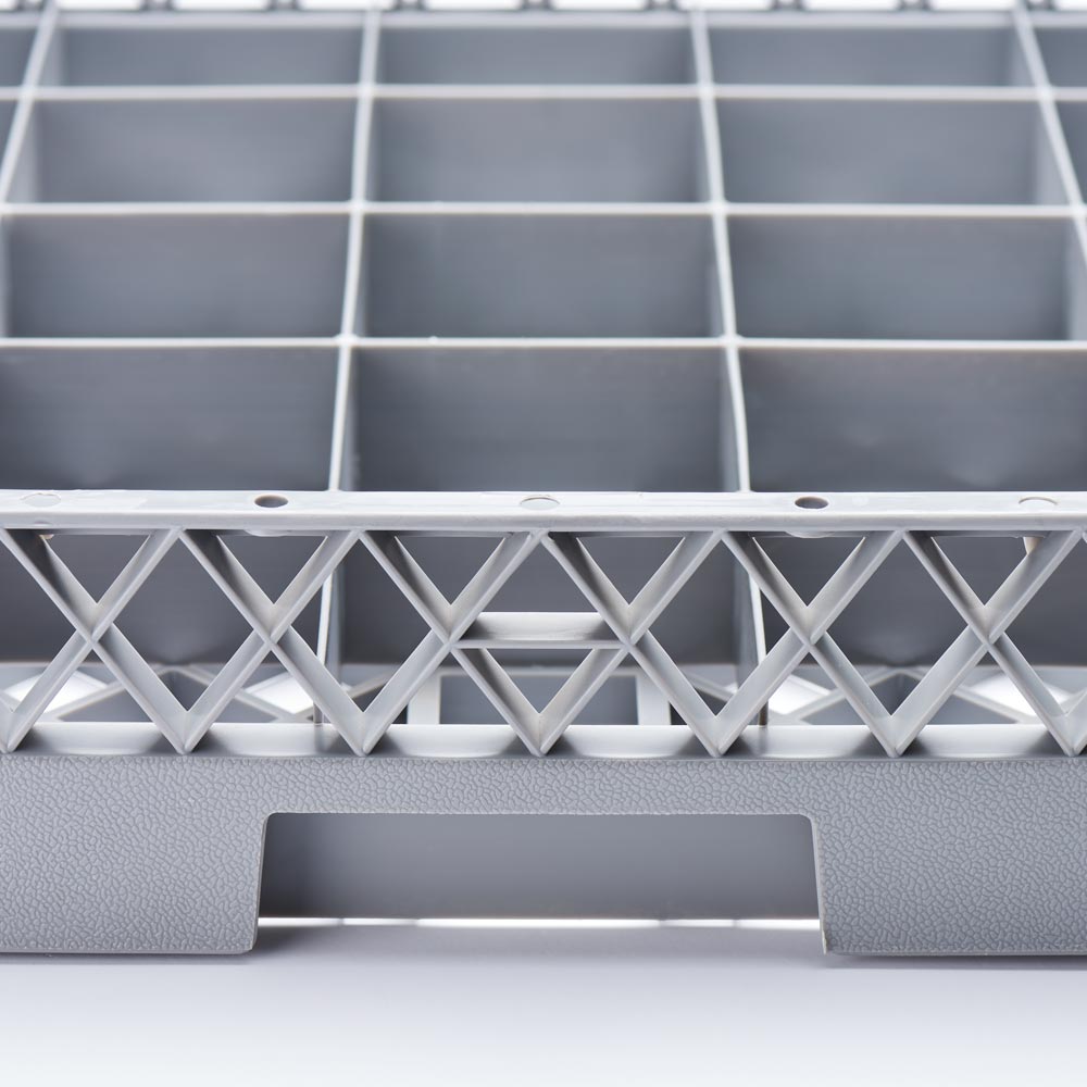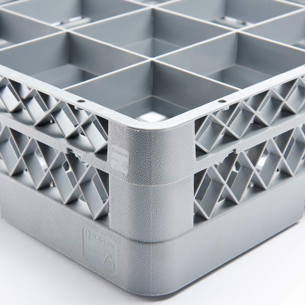Dieser weitmaschige Spülkorb mit 25 Fächern ist konzipiert für die Reinigung von Gläsern und Tassen mit einem großen Durchmesser. Die durchdachte Bauweise lässt Wasser und Luft optimal zirkulieren für eine sorgfältige Reinigung und die perfekte Trocknung Ihres Spülguts! Griffmulden an jeder Seite unterstützen Sie im Arbeitsalltag. Mit dem käuflich erwerbbaren Aufsatzrand (GTIN 4062125027665) geben Sie höheren Gläsern den nötigen Halt. Der Spülkorb ist robust, langlebig, leicht und ohne scharfe Kanten sauber verarbeitet. Mit 500 x 500 mm ist der Korb passgenau für alle (Hauben-), Transportwagen, Tellerhalter, Besteck- und Besteckkörbe von Stalgast!Polypropylen hohe Wasserdurchlässigkeit und Luftzirkulation 25 Fächer 500 mm x 500 mm zugehöriger Aufsatzrand erhältlich allseitig Griffmulden langlebig, beständig, bruchstabil thermisch belastbar beständig gegen Säuren, Alkalien, Fette und Öl beugt Schäden am Spülgut vor geringes Eigengewicht stapelbar recyclebar abgestimmt auf Spülmaschinen von Stalgast