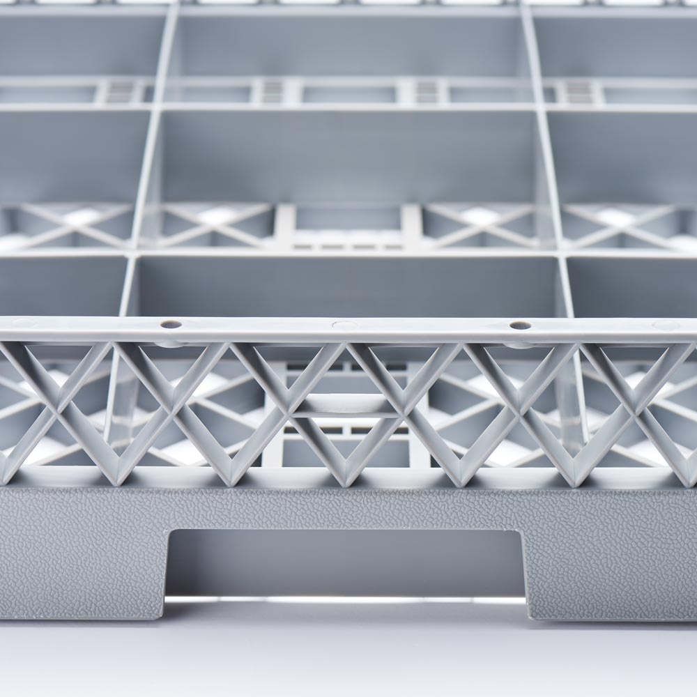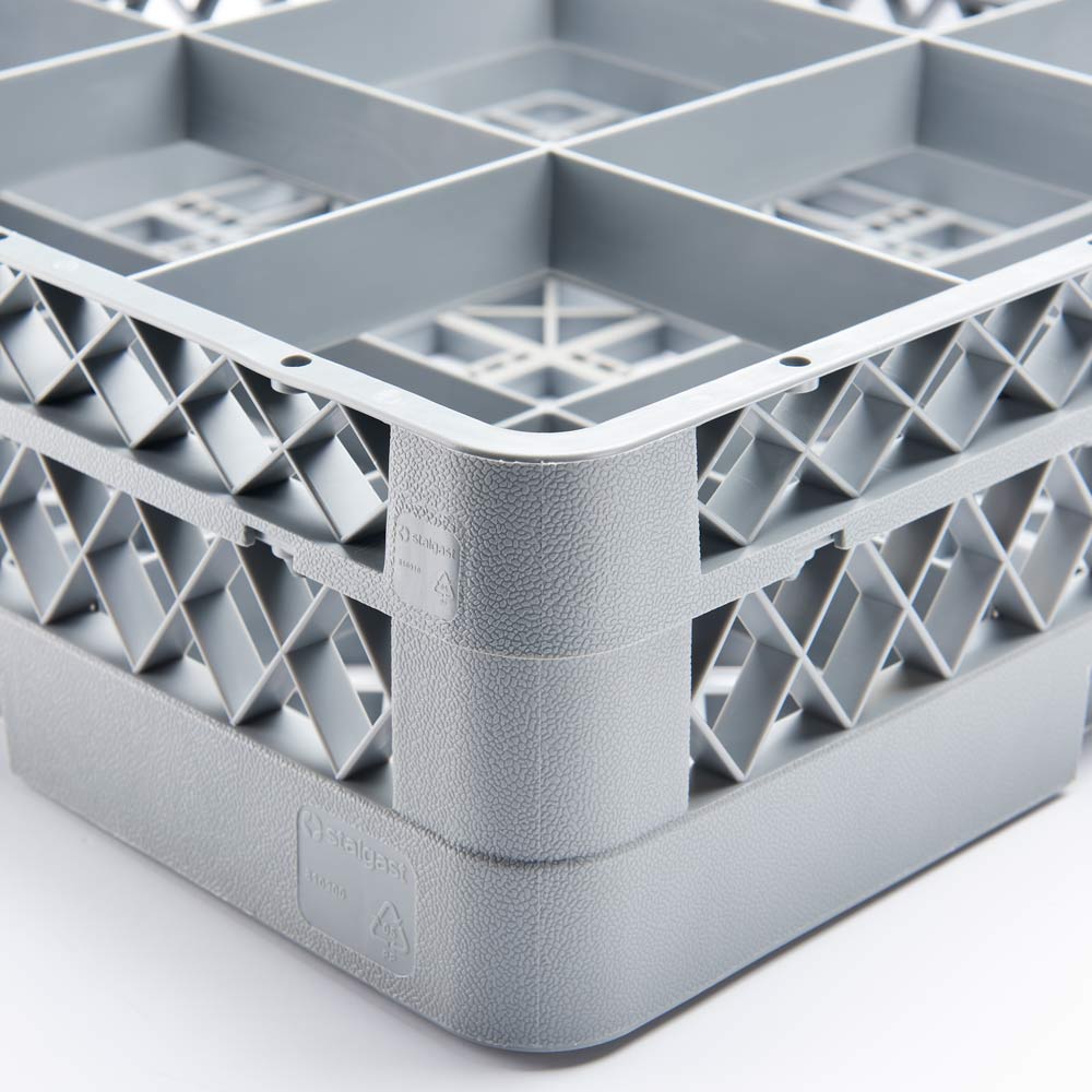 Dieser weitmaschige Spülkorb mit 49 Fächern ist konzipiert für die Reinigung von Gläsern und Tassen mit einem großen Durchmesser. Die durchdachte Bauweise lässt Wasser und Luft optimal zirkulieren für eine sorgfältige Reinigung und die perfekte Trocknung Ihres Spülguts! Griffmulden an jeder Seite unterstützen Sie im Arbeitsalltag. Mit dem käuflich erwerbbaren Aufsatzrand (GTIN 4062125027689) geben Sie höheren Gläsern den nötigen Halt. Der Spülkorb ist robust, langlebig, leicht und ohne scharfe Kanten sauber verarbeitet. Mit 500 x 500 mm ist der Korb passgenau für alle (Hauben-), Transportwagen, Tellerhalter, Besteck- und Besteckkörbe von Stalgast!Polypropylen hohe Wasserdurchlässigkeit und Luftzirkulation 49 Fächer 500 mm x 500 mm zugehöriger Aufsatzrand erhältlich allseitig Griffmulden langlebig, beständig, bruchstabil thermisch belastbar beständig gegen Säuren, Alkalien, Fette und Öl beugt Schäden am Spülgut vor geringes Eigengewicht stapelbar recyclebar abgestimmt auf Spülmaschinen von Stalgast