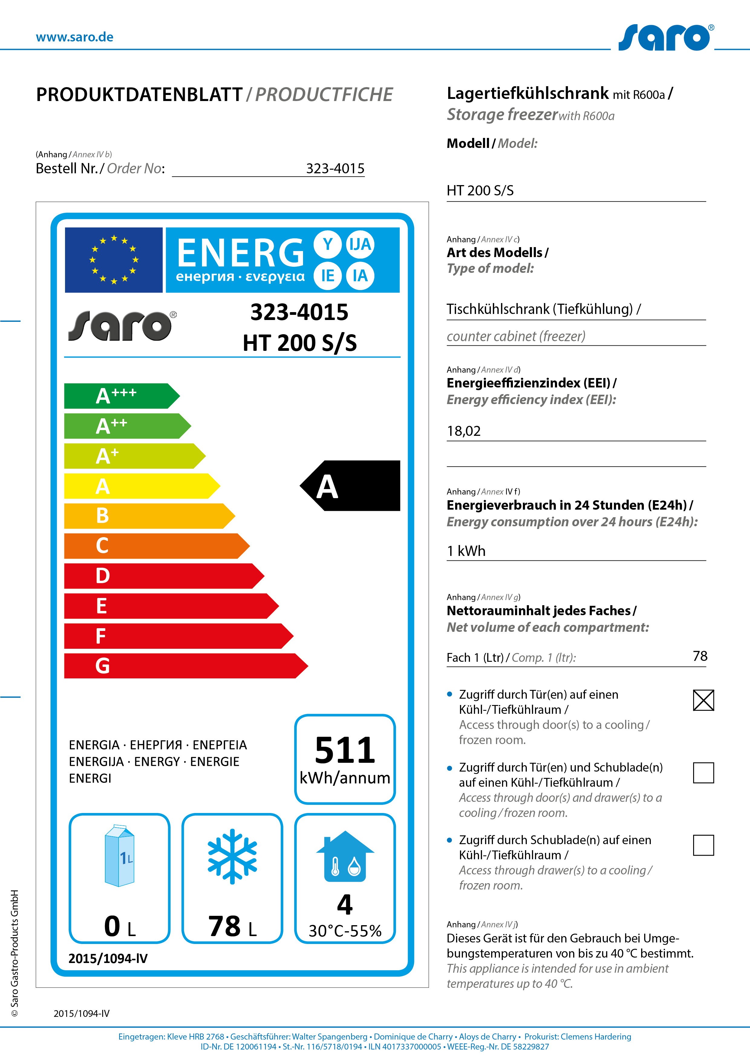Weiterführende Links zu "SARO Lagertiefkühlschrank - Edelstahl HT 200 S/S"